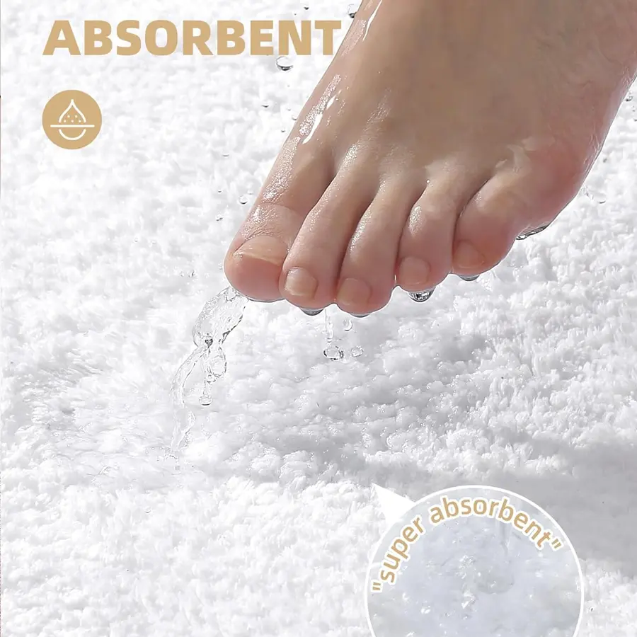 Featuring a 60×40 cm size and crafted with premium microfiber material, this bath mat is engineered to deliver excellent absorbency, keeping your floors dry and safe. The shaggy texture not only enhances its visual appeal but also provides an ultra-soft touch, making every step feel like a gentle embrace. It works effectively as a bath mat, plush door mat, or even a shower rug, offering versatility that’s hard to match. Its neutral white color ensures it blends effortlessly into any décor, adding a layer of elegance to both residential and commercial spaces.